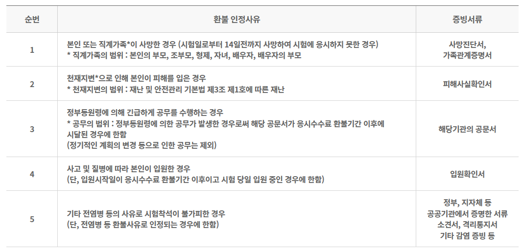 시험 취소 및 환불 규정