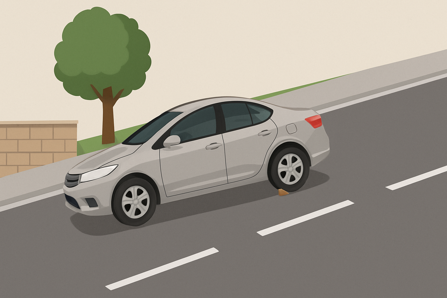 만약 연석이나 보도블럭이 없는 길이라면? 이럴 땐 특히 사이드 브레이크와 고임목이 중요해요. 인도에 의지할 수 없으므로 차 자체의 고정력을 높이는 수밖에 없습니다.