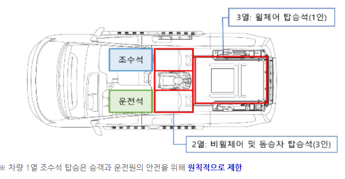 | 휠체어 이용 시 | 고객 외 최대 3명까지 탑승 가능 |