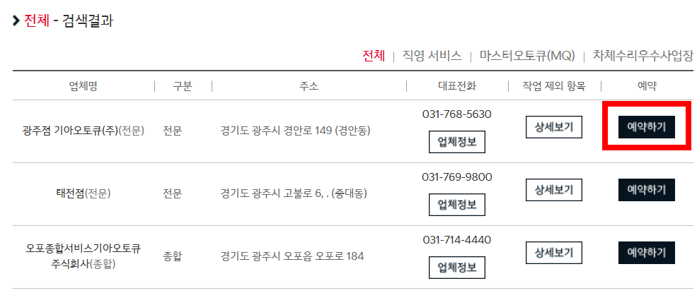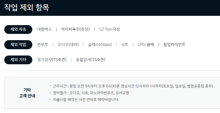 - 작업 항목이 많거나 특수 정비일 경우 전화 예약 추천