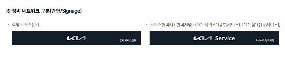 - 직영 서비스센터: 기아에서 직접 운영하는 공식 센터. 정비 품질 및 가격이 표준화됨.