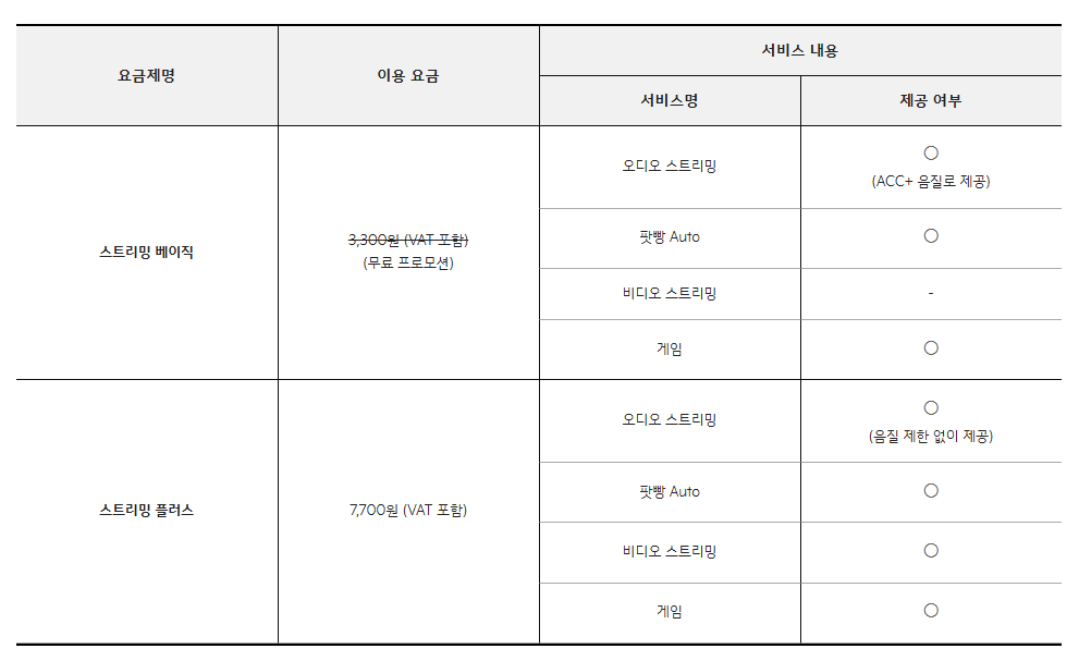 • 약정형(1년): 월 5,500원 (약정 해지 시 할인 반환금 발생)