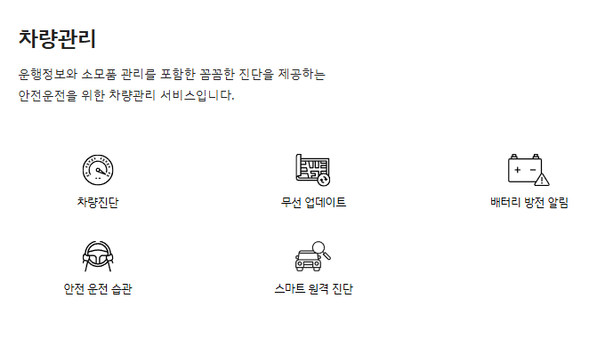 1. 기본 서비스: 원격제어, 안전 보안, 차량 관리, 길 안내 등 → 5년 무료 (차량 사양에 따라 1~2년도 있음)