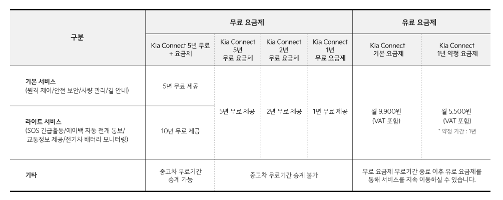 Kia Connect 요금제
