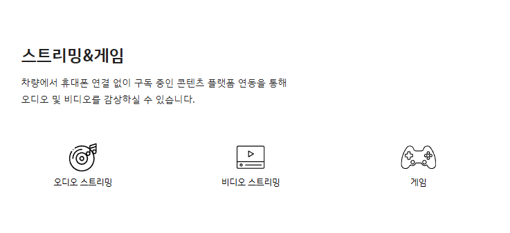 5. 스트리밍 & 게임 – 차량 내에서 콘텐츠 스트리밍 및 간단한 게임 가능