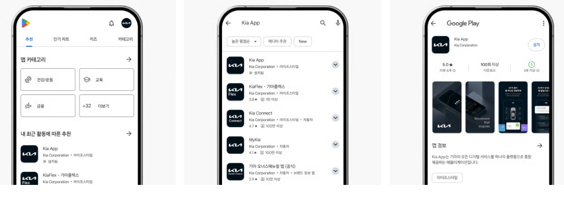 - Kia 공식 앱 확인 후 설치 버튼 클릭
