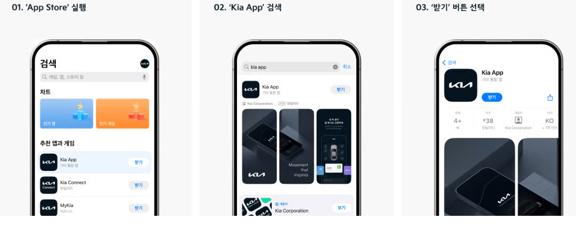 - 검색창에 ‘Kia App’ 또는 ‘Kia Connect’ 입력
