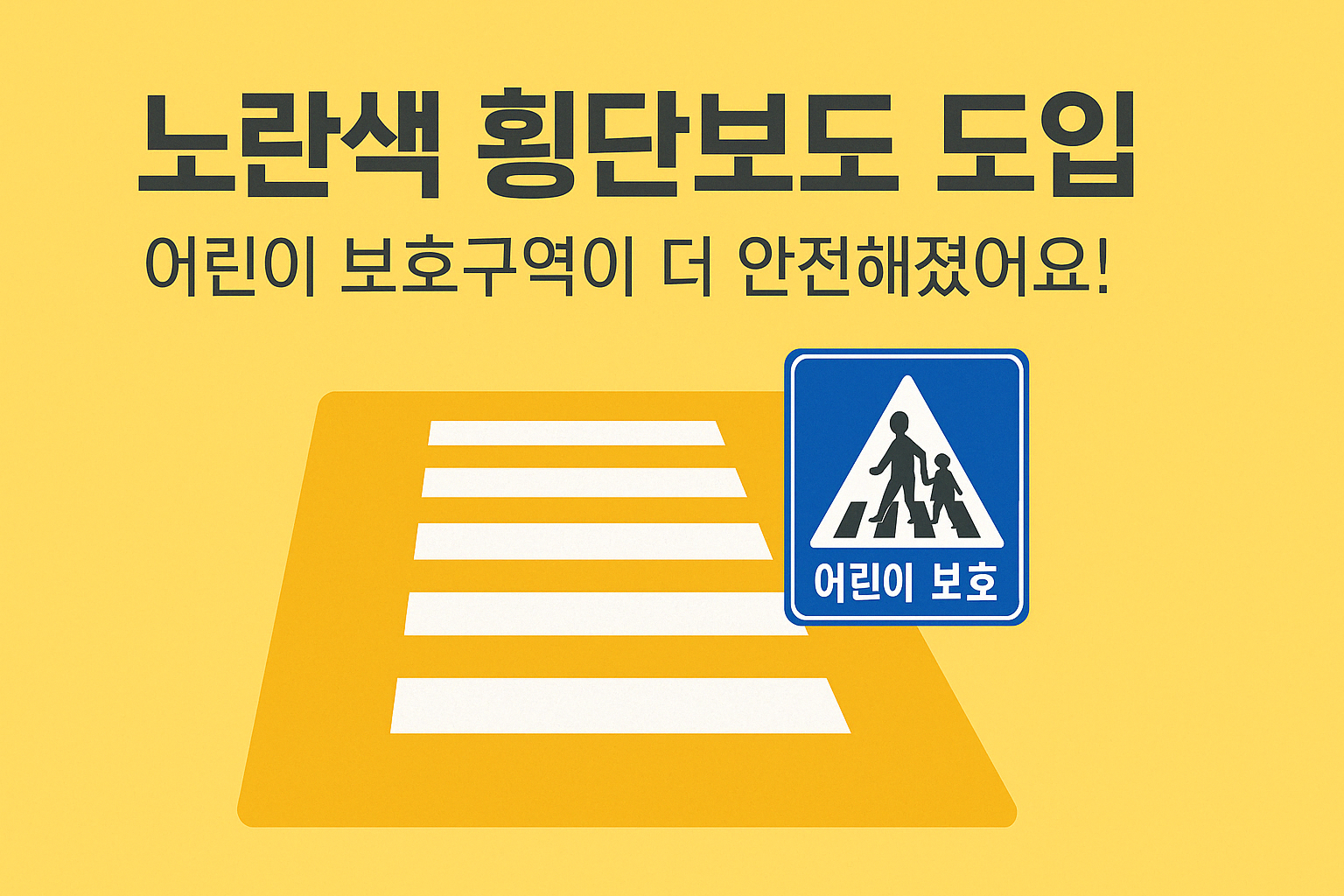 2024년부터 시행된 도로교통법 개정에 따라, 어린이 보호구역(스쿨존)에는 노란색 횡단보도가 점차 확대 도입되고 있습니다.