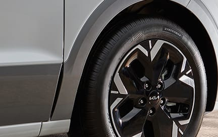 니로 EV에 적용되는 17인치 EV 전용 타이어는 연비와 제동력 모두를 고려한 구성이며, 두 가지 브랜드 타이어가 선택적으로 장착됩니다.