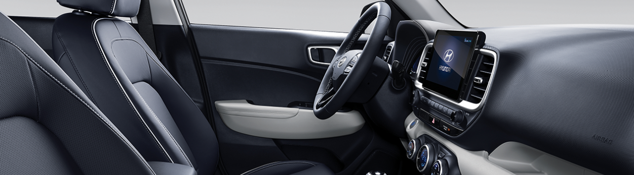 현대 베뉴의 실내는 단순함보다는 ‘하이테크 감성’에 초점을 맞췄습니다. 블랙·그레이 톤의 절제된 컬러 구성과, 트림별로 강화된 인조가죽 마감, 다양한 편의 기능이 조화를 이루고 있습니다.