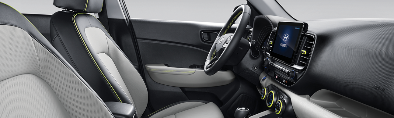 현대 베뉴의 실내는 단순함보다는 ‘하이테크 감성’에 초점을 맞췄습니다. 블랙·그레이 톤의 절제된 컬러 구성과, 트림별로 강화된 인조가죽 마감, 다양한 편의 기능이 조화를 이루고 있습니다.