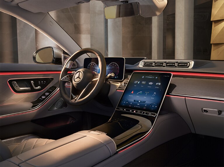 S클래스의 인테리어는 단순한 고급을 넘어서, 마치 개인 맞춤형 라운지에 가까운 감각적 구성을 갖추고 있습니다. 센터페시아에는 OLED 센트럴 디스플레이가 적용되며, 3D 계기반과 MBUX 증강현실 헤드업 디스플레이는 운전자 중심의 디지털 인터페이스를 제공합니다.