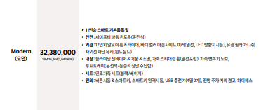 • 모던 2WD A/T: 약 3,238만 원