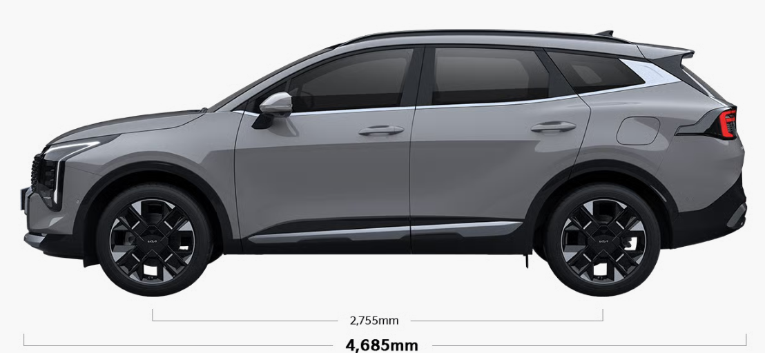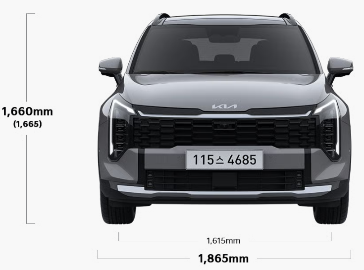 - 차체: 전장 4,685mm × 전폭 1,865mm × 전고 1,660~1,680mm (루프랙 포함 여부에 따라 다름)