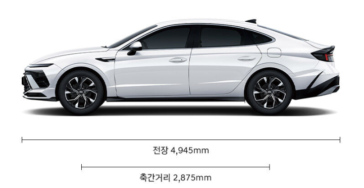 쏘나타 택시는 중형 세단 크기로 넉넉한 실내 공간을 제공합니다. 전체 제원은 다음과 같습니다.