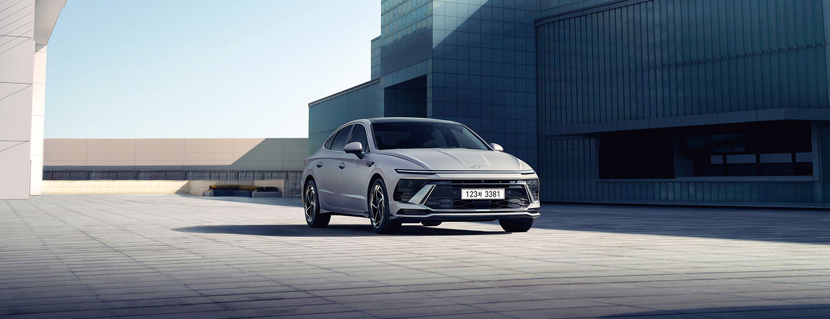 쏘나타 하이브리드는 날렵하고 미래지향적인 외관이 돋보입니다. 전면에는 심리스 호라이즌 램프가 적용되어 LED 주간주행등과 방향지시등이 일체형으로 구성되며, 후면에도 순차 점등 방향지시등과 다이내믹 웰컴 라이트가 탑재됩니다.