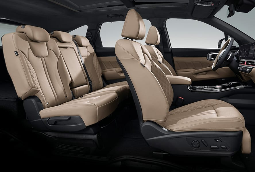 쏘렌토 하이브리드는 2열 공간도 여유롭고, 독립 시트(6인승) 선택 시 뒷좌석 승차감이 크게 향상됩니다.