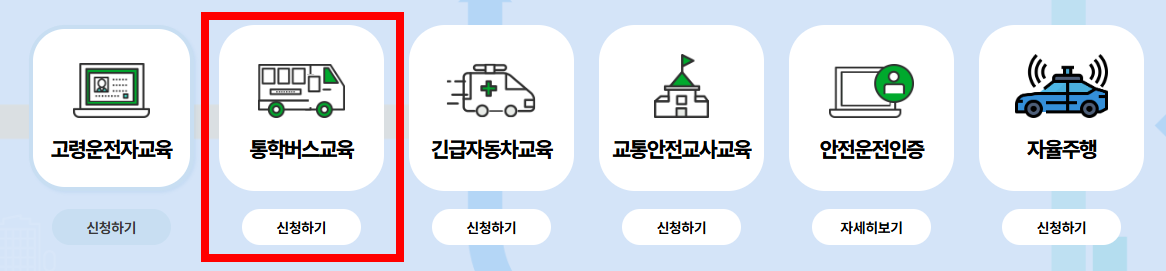 메인 페이지에서 파란 박스의 ‘통학버스 교육’ 선택