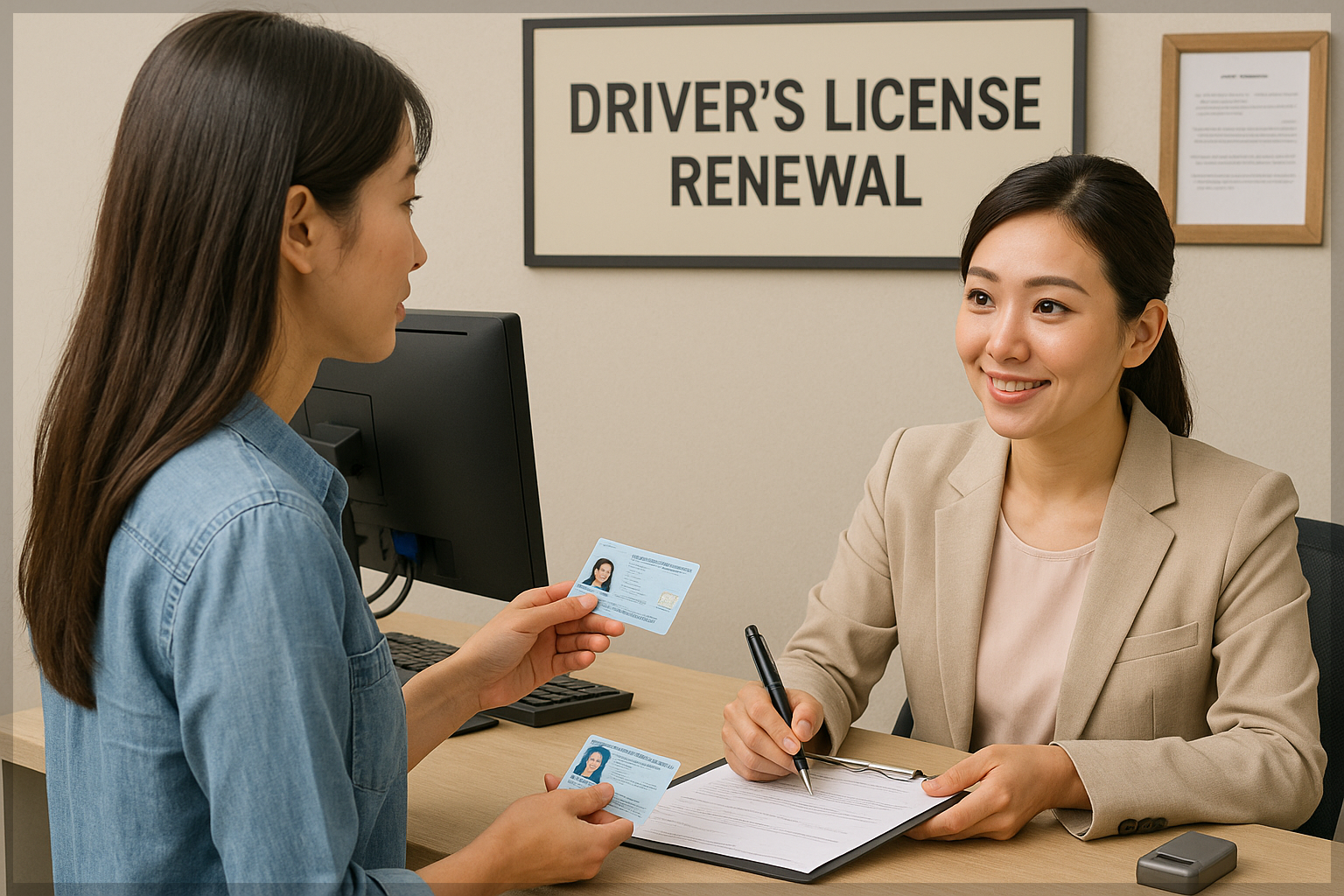 이때 기존 면허증과 동일한 조건으로 갱신 처리되며, 추가 시험은 요구되지 않습니다.
