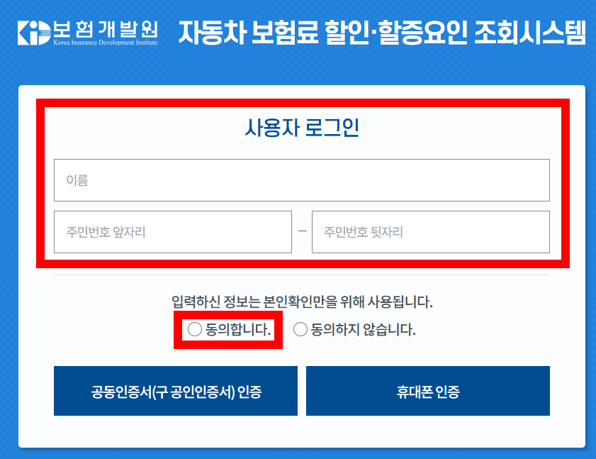 자동차 보험 등급, 사고 건수, 법규 위반 내역은 이름과 주민등록번호, 공인인증서 또는 휴대폰 인증을 통해 로그인하면 다음을 확인할 수 있습니다.