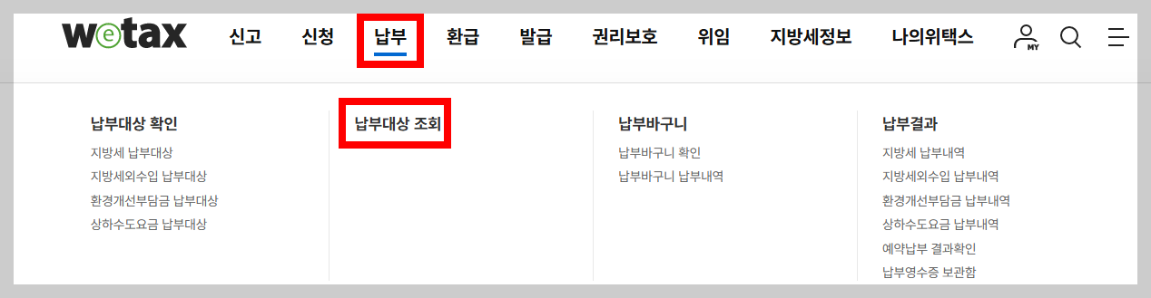 4. ‘납부대상 조회’ 항목 선택