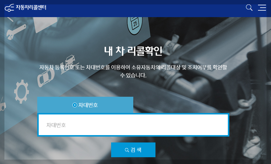 - 자동차리콜센터에서 등록번호로 조회 가능