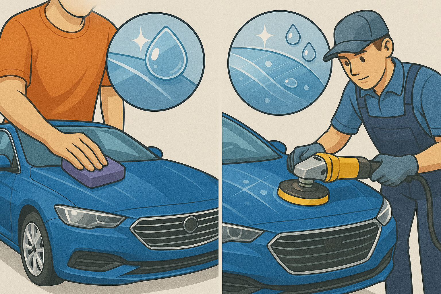 유리막은 화학적으로 도장면에 결합하는 반면, 왁스는 단기적인 보호막으로 쉽게 사라집니다.