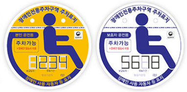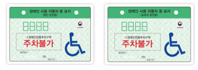 ※ ‘보행장애 있음’ 표지에만 ‘주차가능’ 표시가 부여되며, ‘주차불가’ 표지는 전용 주차구역 이용 불가