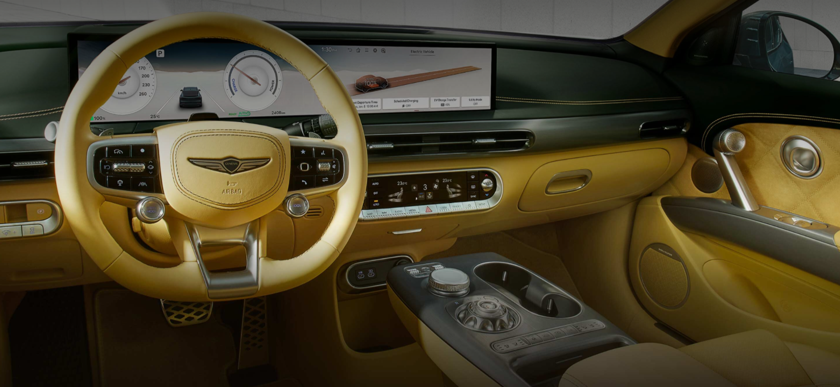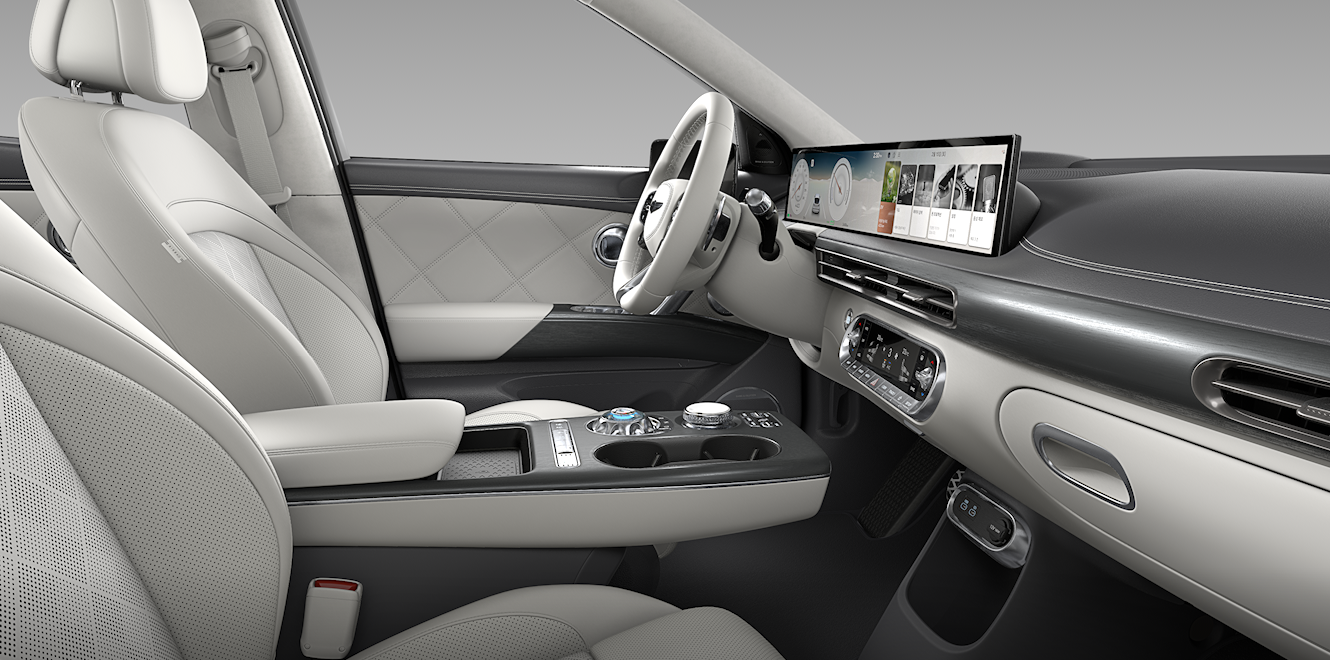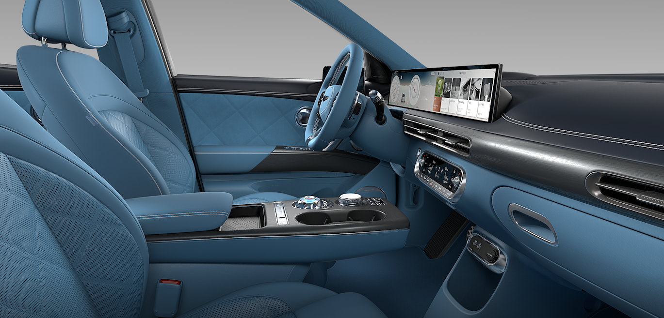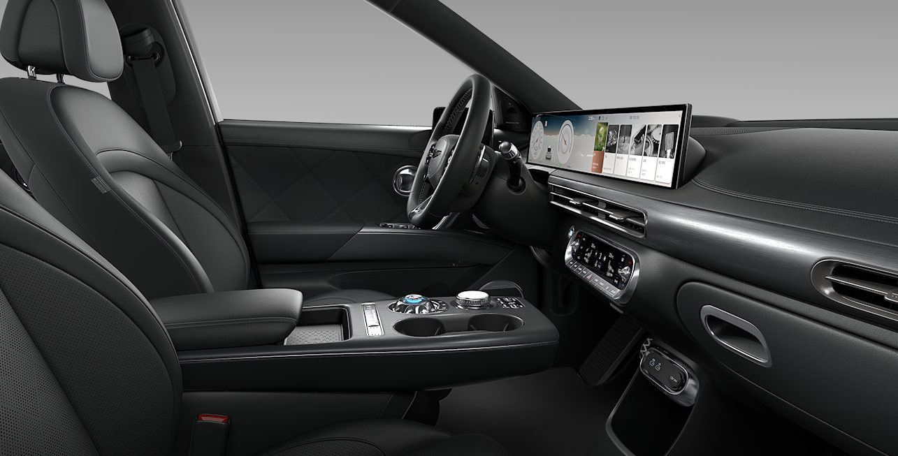 GV60의 실내는 단순히 ‘전기차’의 감성에 머물지 않습니다. 첨단 테크놀로지와 정제된 미니멀리즘이 조화를 이루며, 제네시스만의 고급스러움이 차량 전체에 깊이 스며들어 있죠. 전체적으로 유려한 곡선과 미래적인 분위기를 바탕으로, 실내는 ‘프리미엄 전기 SUV’의 정체성을 가장 뚜렷하게 보여주는 공간이라 할 수 있습니다.