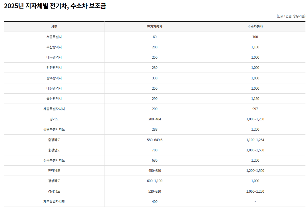 지자체별 전기차 보조금
