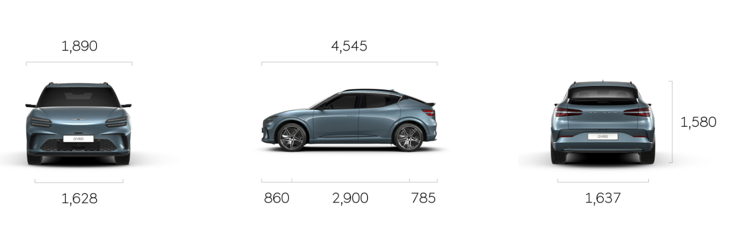 GV60은 현대차그룹의 전기차 전용 플랫폼인 E-GMP를 기반으로 설계되어 넓은 실내 공간과 안정적인 무게 배분이 특징입니다. 기본적인 차량 제원은 다음과 같아요.