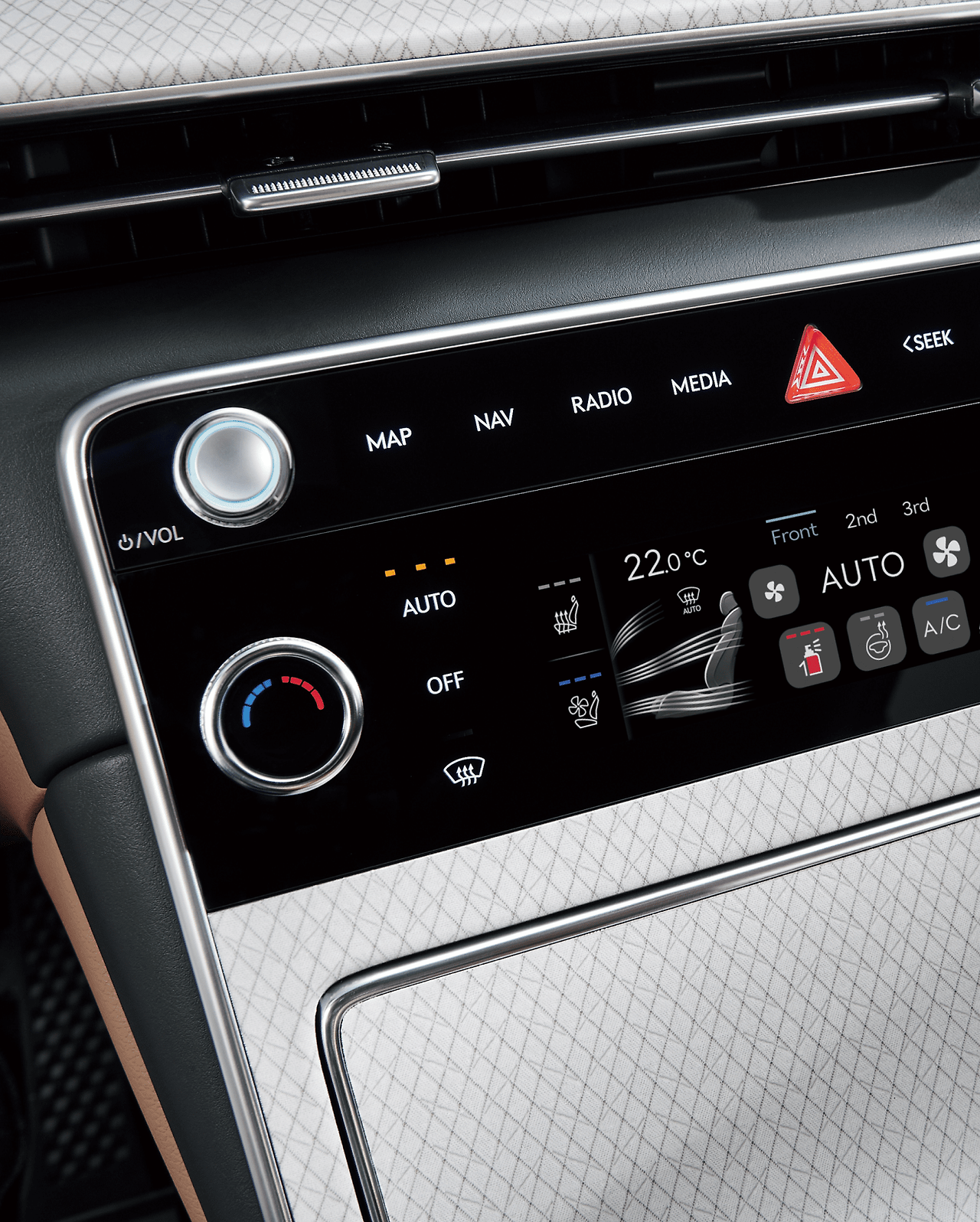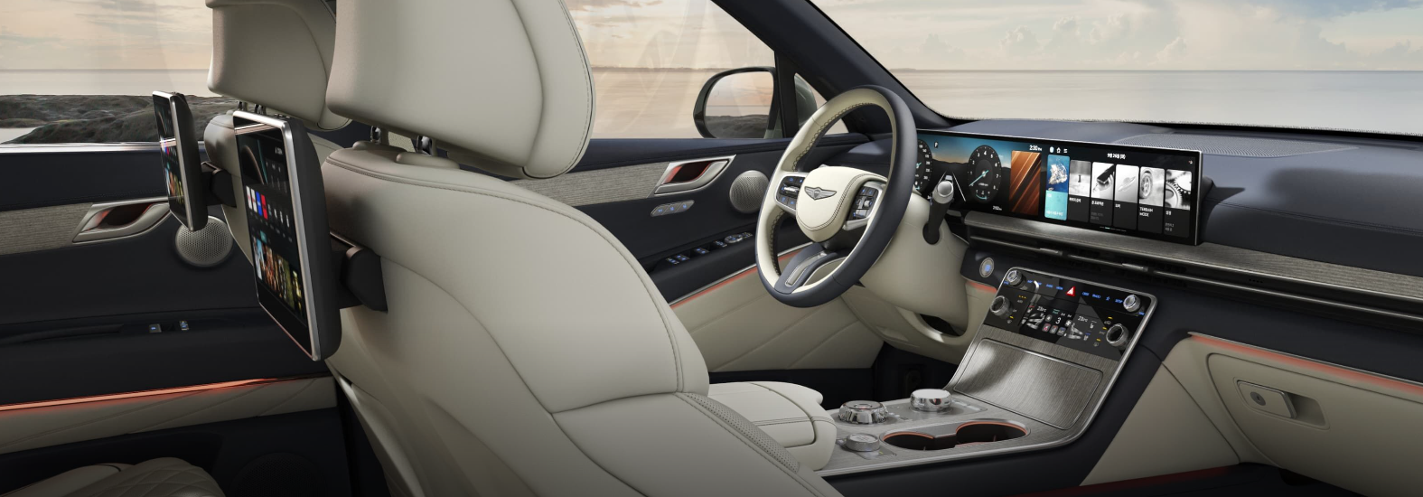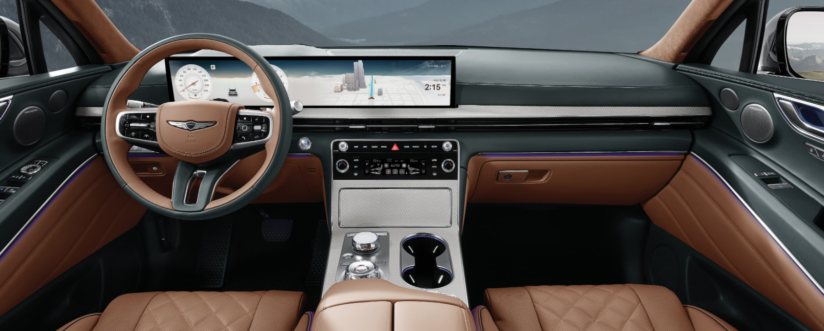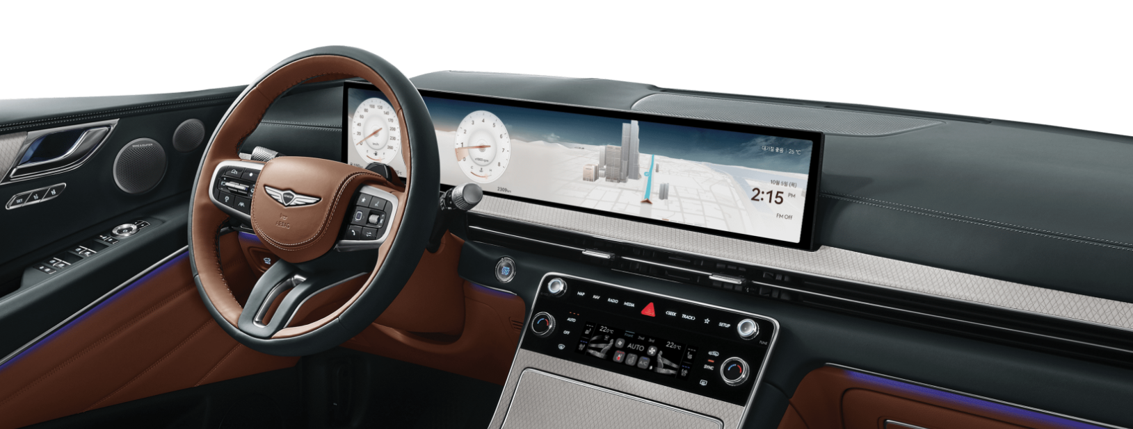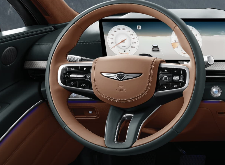 • 스티어링 휠: 투톤 가죽 + 제네시스 신규 엠블럼