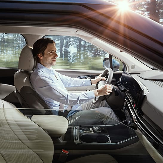 하이브리드 트림의 외장은 강인하면서도 프리미엄한 SUV 스타일이 인상적이에요. ‘오퍼짓 유나이티드’ 철학을 바탕으로 정제된 실루엣과 SUV처럼 묵직한 라인감을 유지합니다.