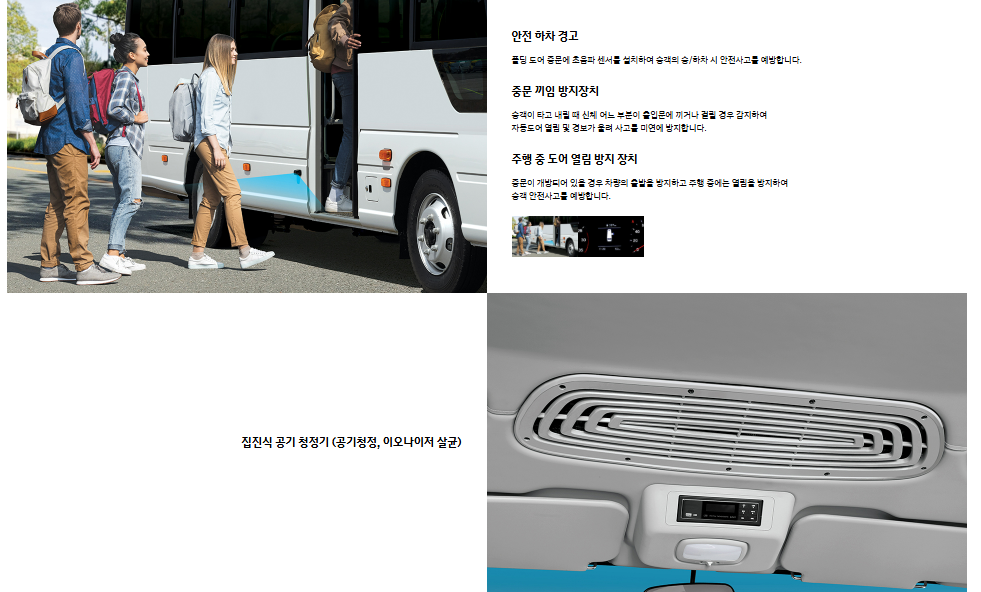 - 29~33인승: 어린이 통학버스, 대규모 셔틀, 기업 전용 차량