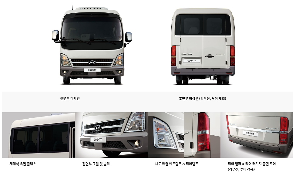 사업용 차량부터 가족용 캠핑카까지, 활용도 높은 중형버스 시장에서 현대자동차의 카운티(COUNTY)는 오랜 시간 대표 모델로 자리해왔다.