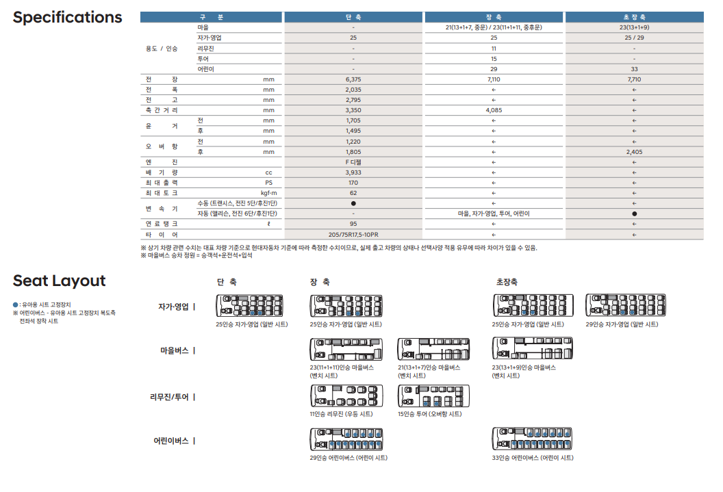 | 장축 | 7,110 | 11~29 | 리무진, 마을버스, 렌터카, 어린이버스 등 |