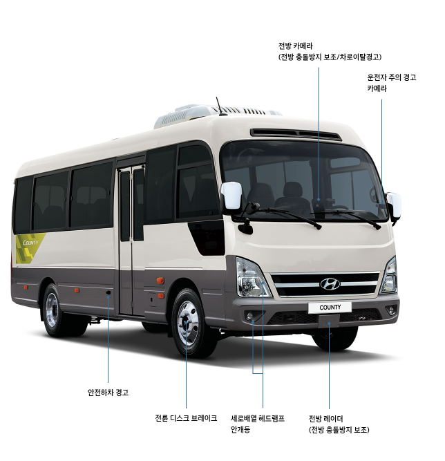 카운티 New Breeze는 다양한 운전자 보조 시스템을 탑재해, 대형차 특유의 부담감을 줄여준다.