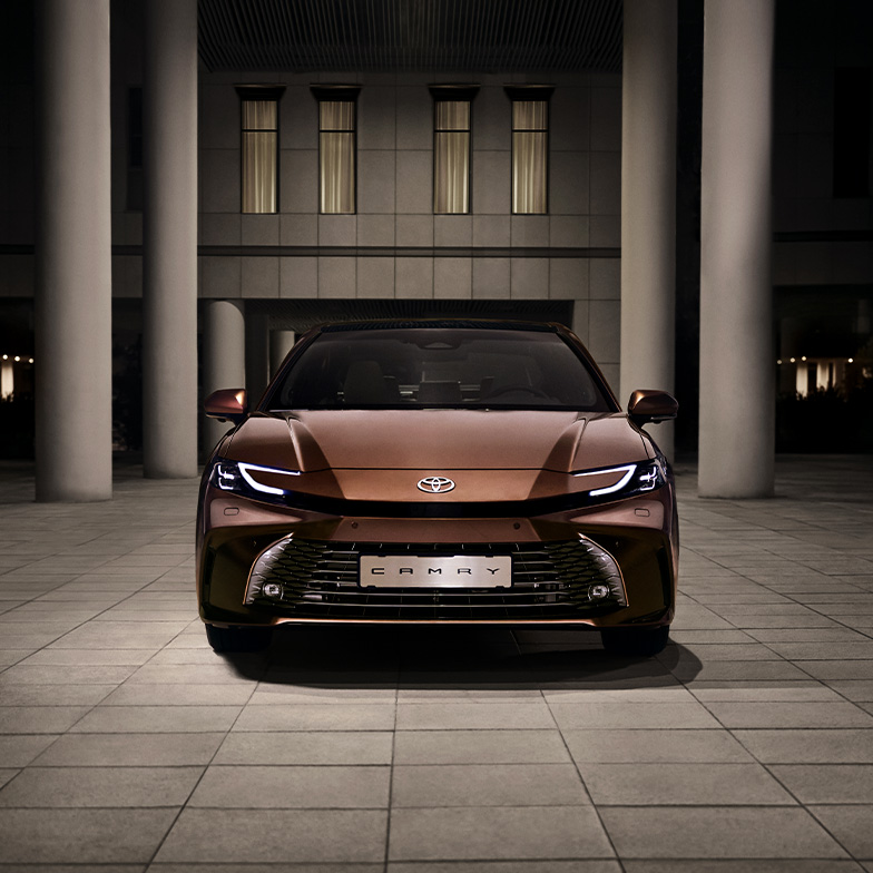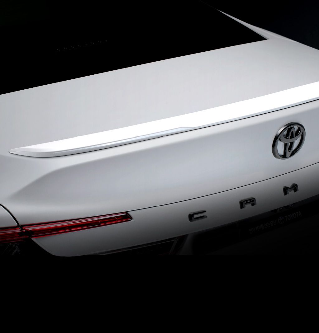 2025 캠리는 ‘해머헤드 컨셉’ 전면부 디자인을 적용해 역동적인 인상을 주며, LED 헤드램프와 리어램프는 날렵한 실루엣을 강조합니다. 후면 디자인은 수평형 라인이 강조되어 시각적으로 차량의 안정감과 세련미를 동시에 느낄 수 있게 합니다.