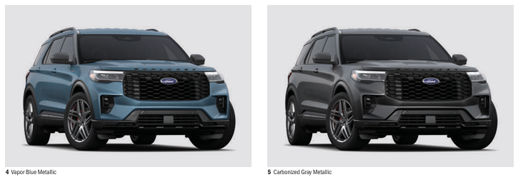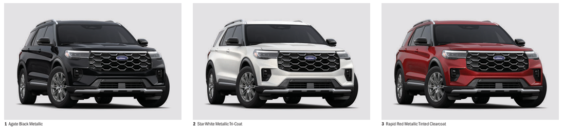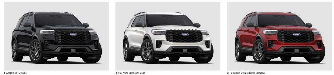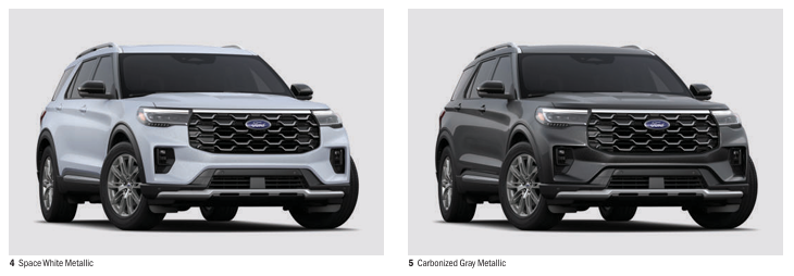 ST-Line 색상은 아게이트 블랙, 스타 화이트, 라피드 레드, 베이퍼 블루, 카보나이즈드 그레이 5종이 제공되며, Platinum은 스페이스 화이트가 추가된 총 5종의 외장 색상을 선택할 수 있습니다. 어떤 컬러를 선택하든 익스플로러 특유의 중후하면서도 세련된 분위기를 느낄 수 있습니다.