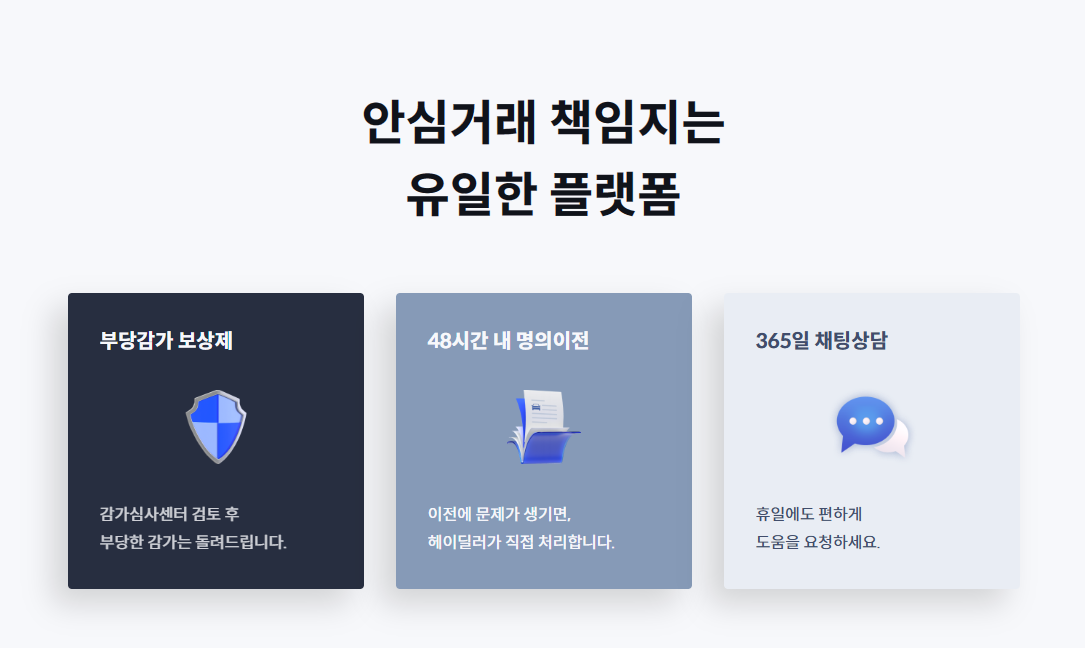 헤이딜러는 이용자 보호를 위해 다양한 보장 제도를 운영하고 있습니다.