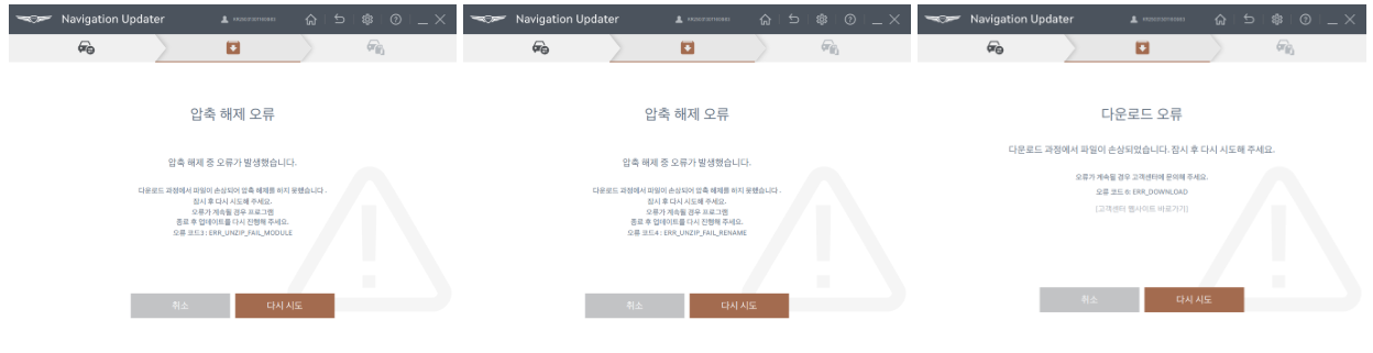 ‘ERR_UNZIP_FAIL_MODULE’, ‘ERR_DOWNLOAD’, ‘ERR_FILE_SIZE’ 등은 파일 다운로드 도중 오류가 생겼거나, 보안 프로그램이 압축 해제를 차단한 경우에 발생하는 메시지입니다.