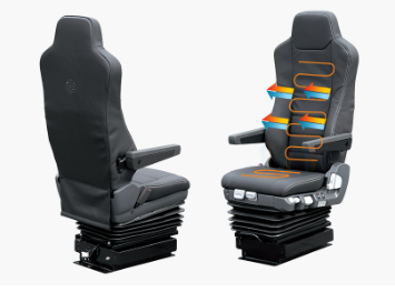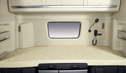 실내는 블랙과 베이지톤의 조화로 고급스럽고 안락한 분위기를 자아냅니다. 운전석은 천연가죽으로 마감된 통풍·열선 프리미엄 시트가 기본 적용되어 있어 장거리 운전 시 피로감을 덜어주고, 동승석은 폴딩 시트로 활용도를 높였습니다. 무시동 히터와 무시동 에어컨은 날씨와 관계없이 실내 온도를 유지할 수 있도록 도와줍니다. 이 외에도 냉온장고, 전동 선루프, 롤 타입 선바이저, 디지털 타코그래프, 이오나이저 공조 시스템까지 다양한 사양이 편의성을 더합니다.