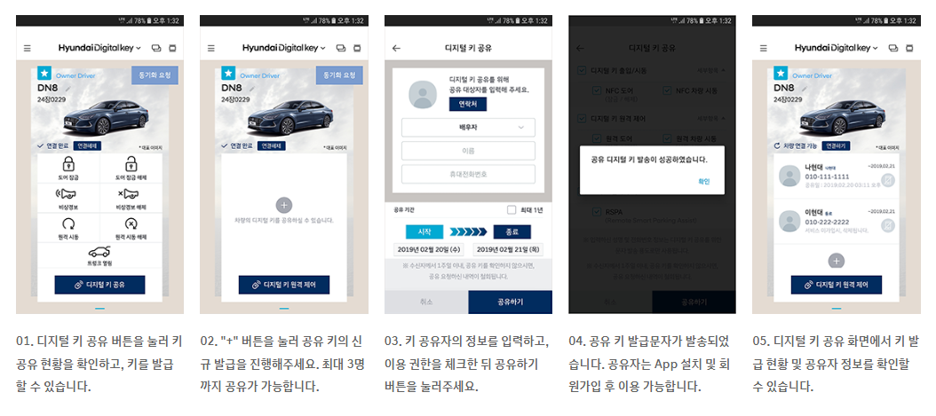 - 앱에서 디지털 키 메뉴에 들어가 ‘공유’ 버튼 클릭