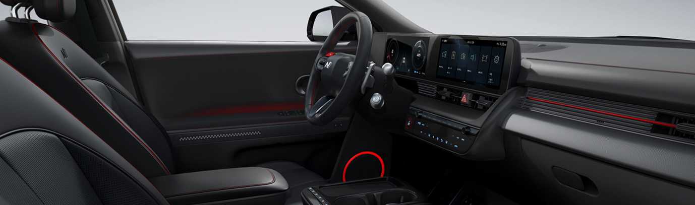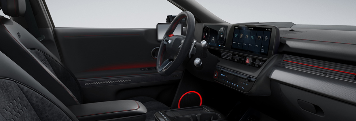 - 블랙원톤 + 레드 스티치 / N Line 전용 알칸타라 + 천연가죽 시트