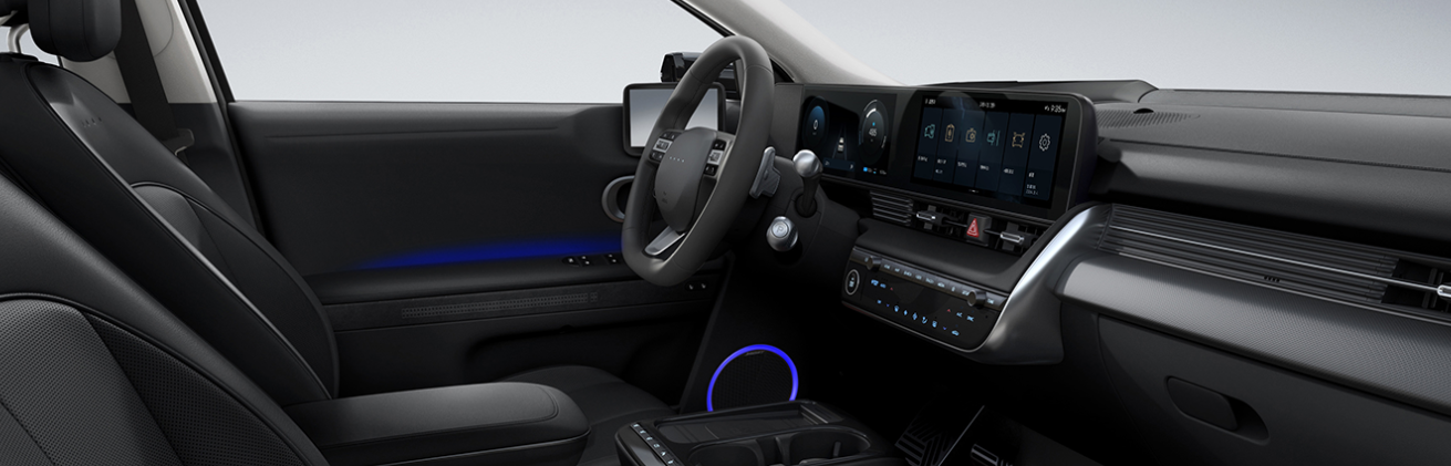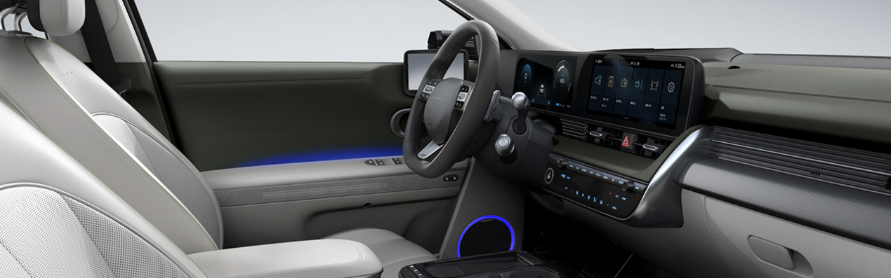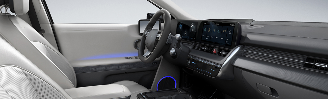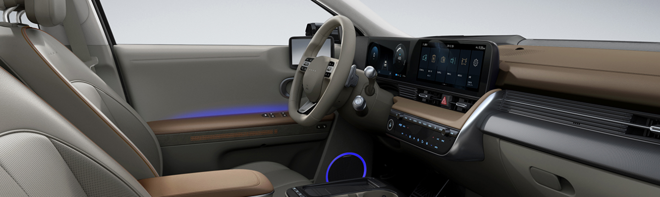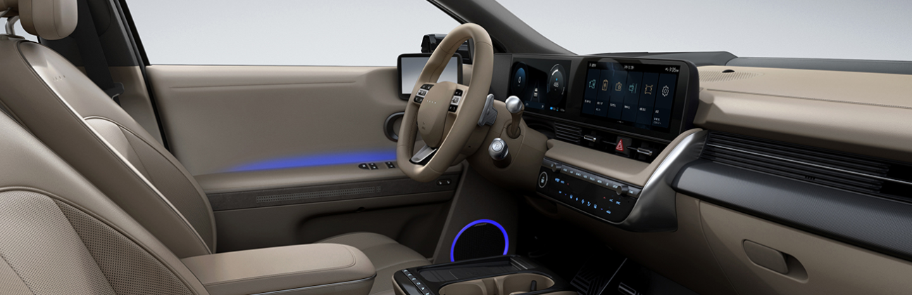 현대 아이오닉5는 실내 공간 활용을 극대화한 전기차 전용 플랫폼(E-GMP)을 기반으로 ‘Living Space’ 콘셉트를 구현했습니다. 전기차 특유의 평평한 바닥과 긴 축간거리를 활용해 여유 있는 공간감과 휴식 중심의 인테리어 구성이 특징입니다.