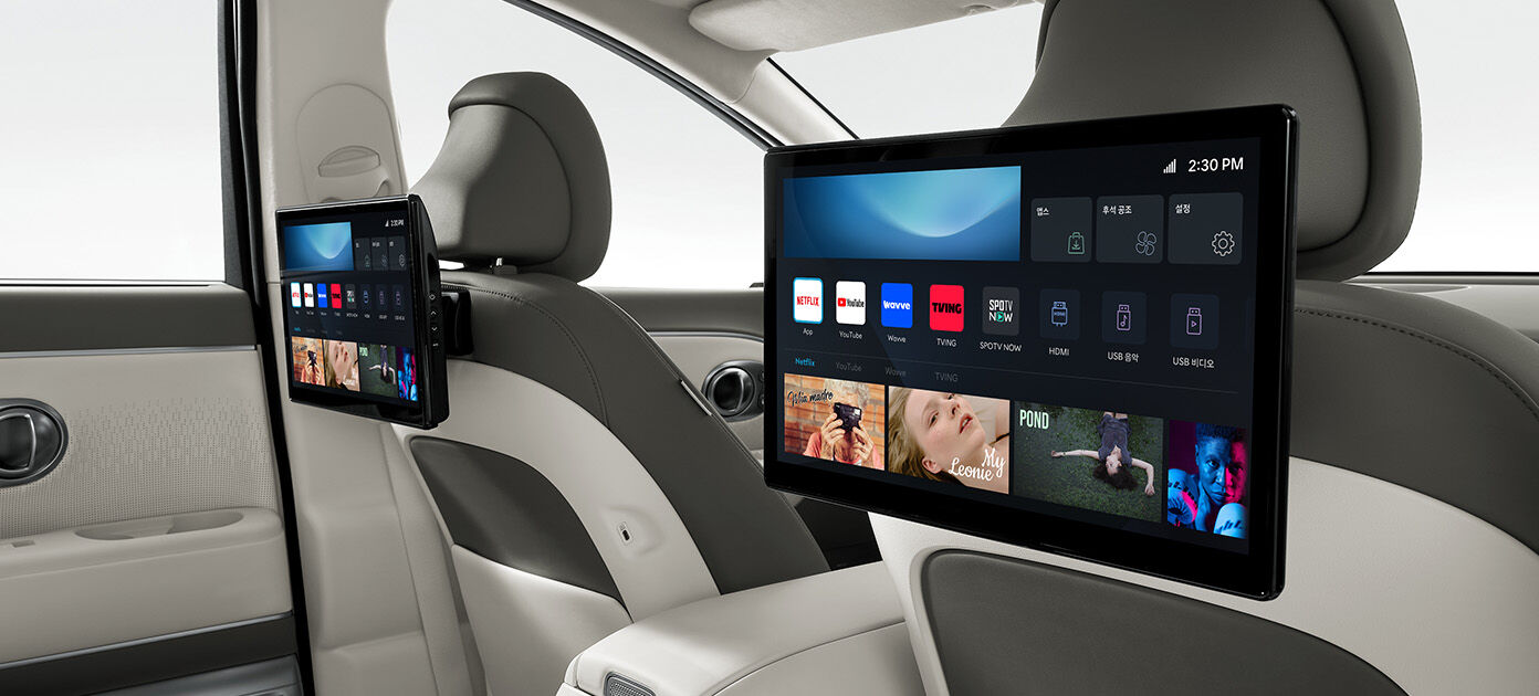 2열 후석 엔터테인먼트 옵션(14.6인치 스크린)은 유튜브, 넷플릭스 등 직접 스트리밍도 지원해요.