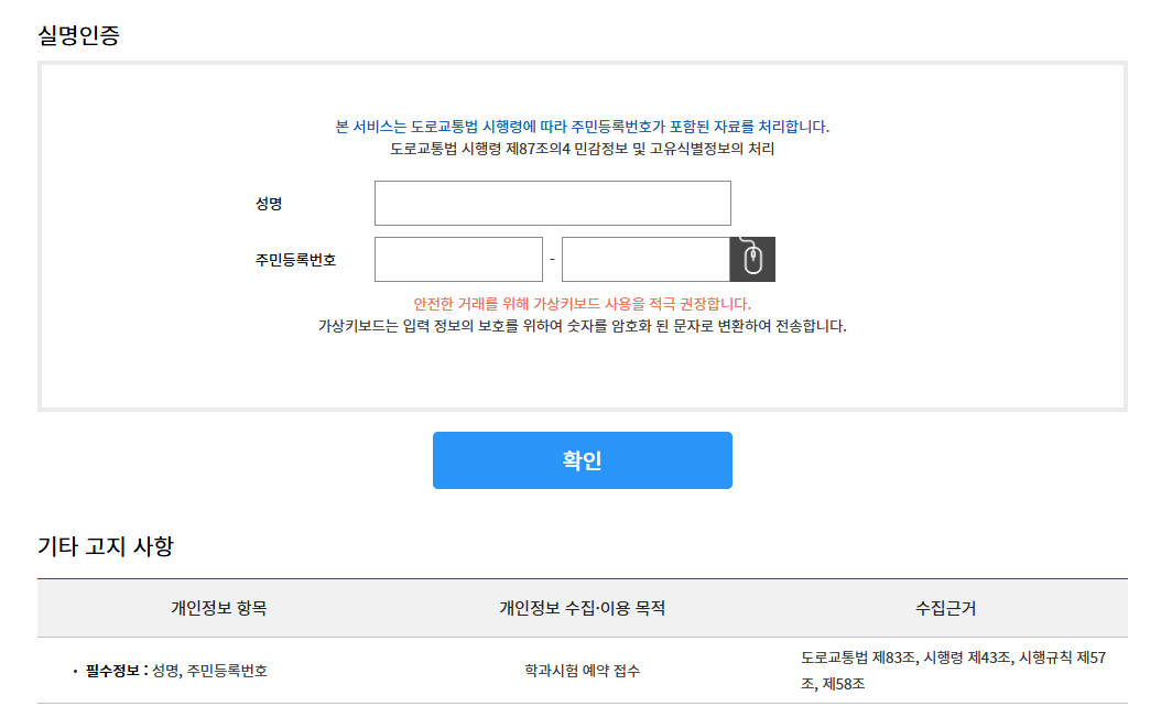 학과시험은 면허가 없는 경우에만 응시합니다.